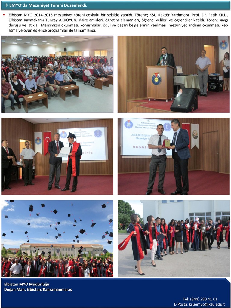 Elbistan Meslek Yüksekokulu Nisan-Mayıs-Haziran 2015 E-Bülten