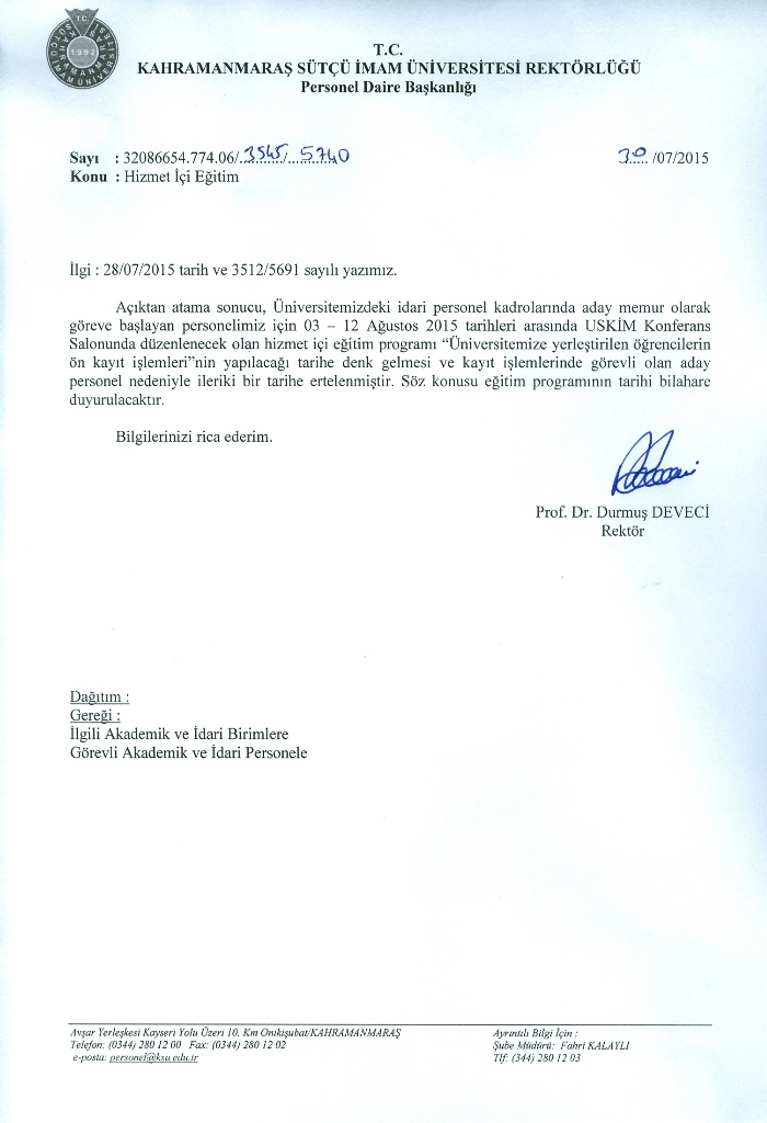 Hizmet İçi Eğitime Katılacak Personelin Dikkatine
