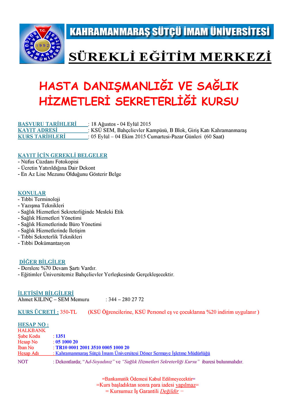SEM Hasta Danışmanlığı ve Sağlık Hizmetleri Sekreterliği Kursu
