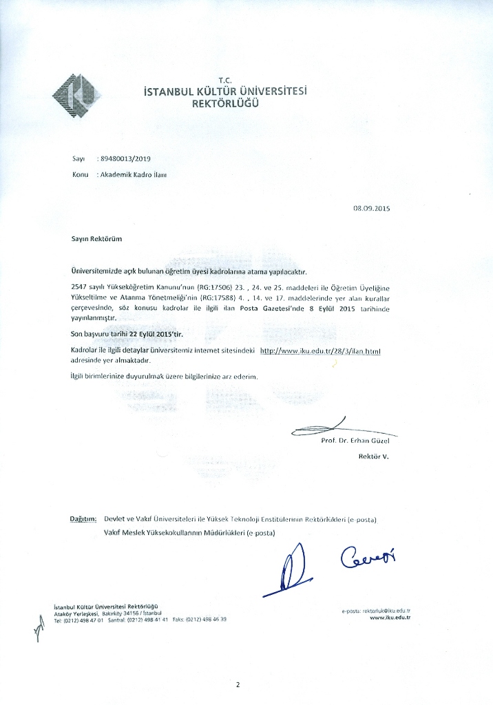 İstanbul Kültür Üniversitesi Akademik Personel Alım İlanı