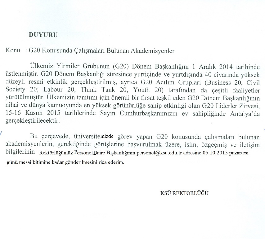 PERSONEL DUYURU