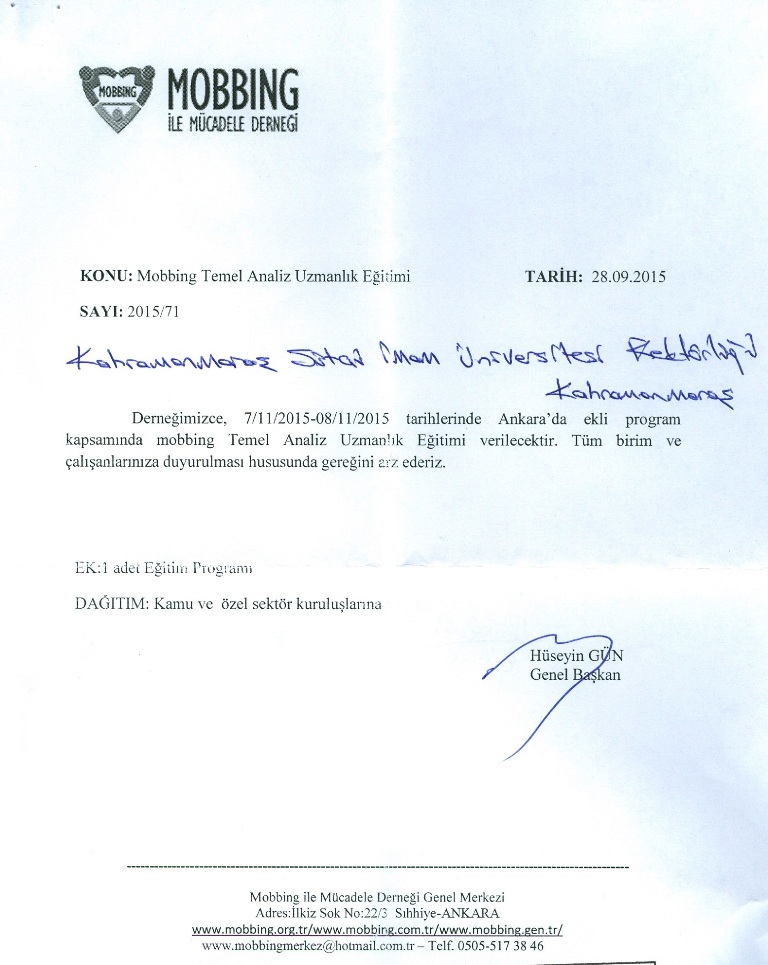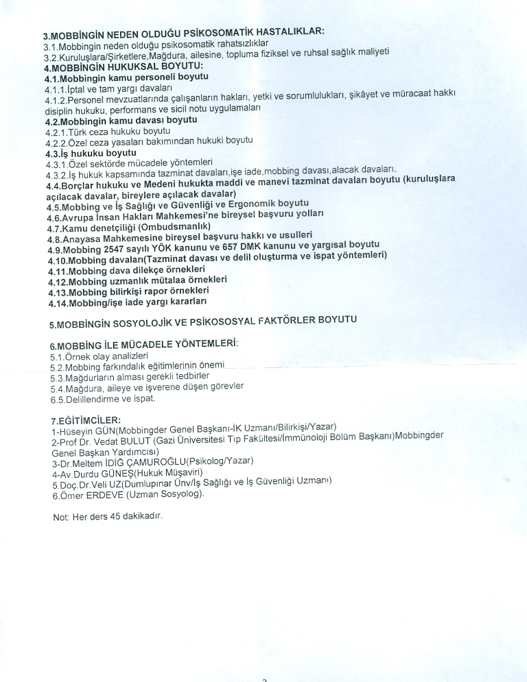 Mobbing İle Mücadele Derneği Duyurusu: Mobbing Temel Analiz Uzmanlık Eğitimi