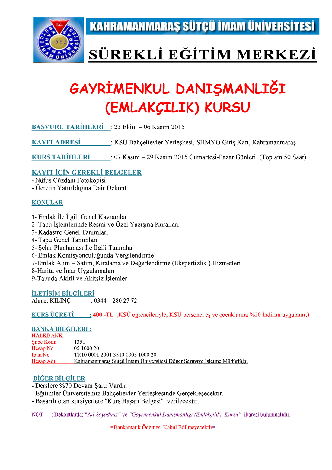 SEM Gayrimenkul Danışmanlığı (Emlakçılık) Kursu