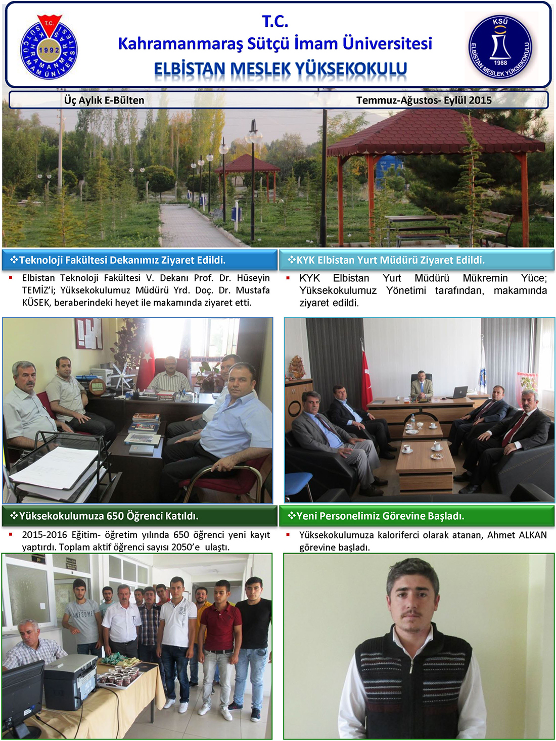 Elbistan Meslek Yüksekokulu Temmuz-Ağustos-Eylül 2015 E-Bülten