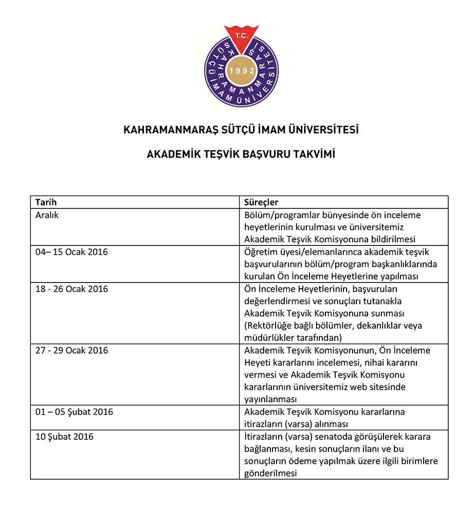 AKADEMİK TEŞVİK BAŞVURU TAKVİMİ
