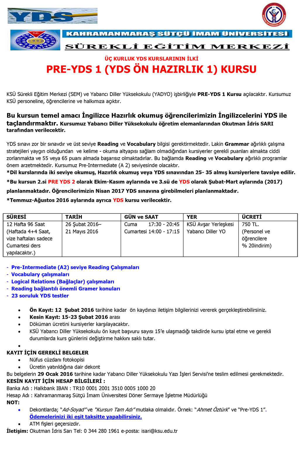 SEM PRE-YDS 1 (YDS ÖN HAZIRLIK 1) KURSU