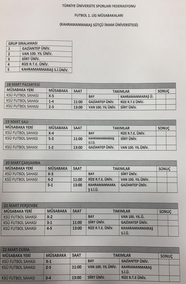 TÜSF Üniversiteler Futbol 1.Lig Grup Birinciliği Müsabakaları
