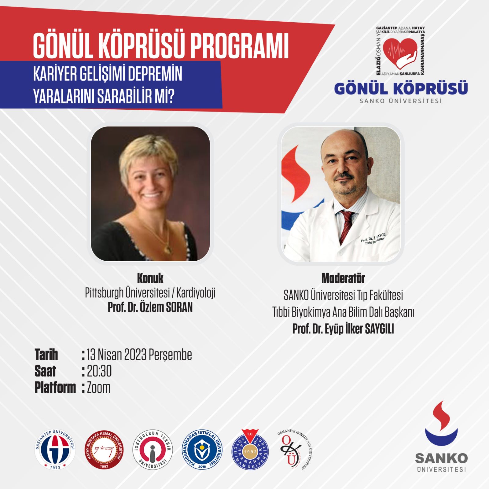Pittsburgh Üniversitesi - Kardiyoloji / Prof. Dr. Özlem SORAN’ın konuk olarak katılacağı, ‘Karier Gelişimi Depremin Yaralarını Sarabilir mi?’ konulu Gönül Köprüsü Programımız,